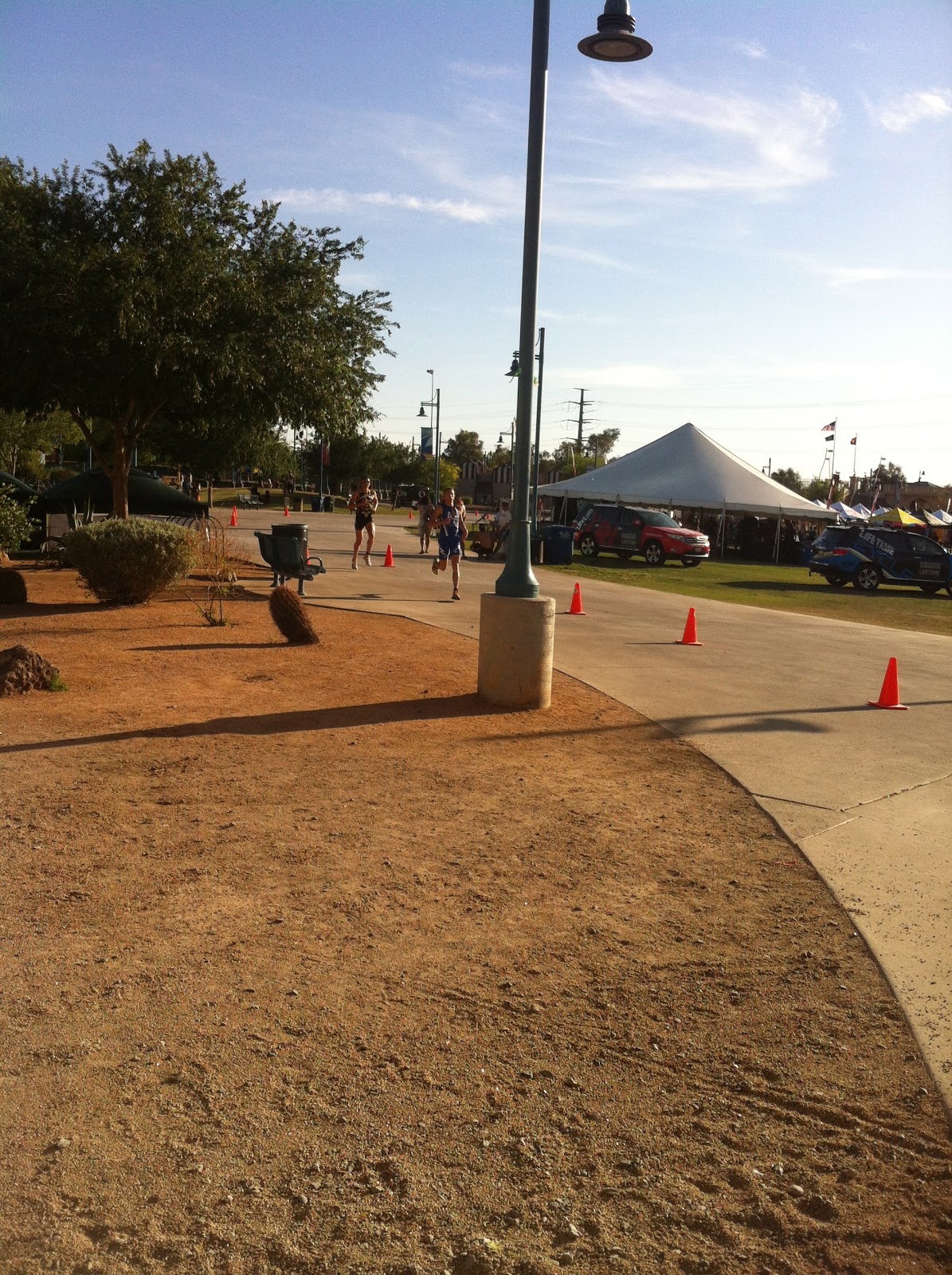 With temperatures creeping up towards 80 degrees, it was getting rather toasty when we hit the run course. As I started to get my feet under me, I questioned if I had pushed the bike just a little to hard. My legs felt stiff, my cadence was low and I simply could not find a rhythm.... It was going to be a long 5 more miles at this rate!